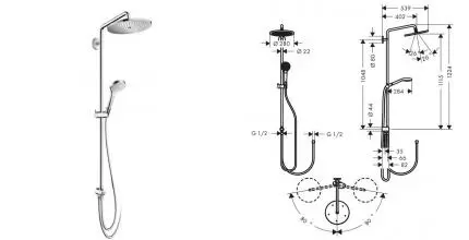 Hansgrohe душевые стойки без смесителя с тропическим душем