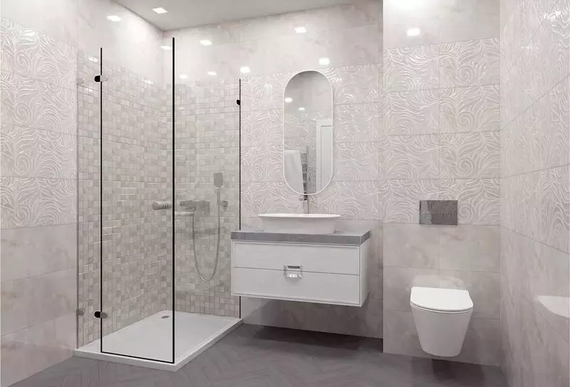 Как известно, крупноформатная плитка обладает рядом преимуществ. Благодаря минимальному количеству швов, она удачно вписывается в интерьер и создает впечатление монолитного покрытия. Такое покрытие можно использовать как заменитель фактурной штукатурки или обоев. Дизайнеры компании разработали необычайно красивую керамическую плитку с глянцевой поверхностью, имитирующую натуральный мрамор серого и бежевого цветов.