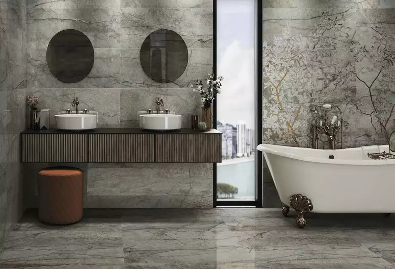 Изготовленная из прочного керамогранита Коллекция плитки «Fanal» ESSENCE имитирует камень, а иногда похожа на китайский шелк. Она предназначена для кухни, ванной или гостиной от испанского бренда. Плитка представлена в трёх цветах. Цвет слоновой кости вместе с гладкой отражающей поверхностью плитки поможет визуально расширить помещение и сделать светлее. А серый и особенно глубокий дымчато-серый цвета словно помещают вас в туман, где стираются грани пространства и не ощущается граница помещения. Эта серия плитки действительно зрительно переносит границу вашей ванной за линию стены и пола. Современный стиль и сложный узор из трещин и прожилок, который можно изучать часами привнесут стиль, уникальность и уют в дизайн помещения, подарят спокойствие, умиротворение и покой, который хочется ощутить в душе вечером после дня суеты и переживаний. В коллекции также представлен декор с орнаментом и с силуэтами листвы. Последняя особенно выразительно будет смотреться на стене в ванной, умножая эффект дымчатого тумана и смещения границы пространства. Плитка обрезная, а ректификация позволяет укладывать плитку без шва. Можно купить Коллекция плитки «Fanal» ESSENCE на сайте www.blumart.ru или по телефону +7-495-540-51-52 – всё объяснят, проконсультируют и помогут оформить доставку по Москве и Московской области. Или же лично в магазине Blumart – самом большом гипермаркете сантехники и плитки в Москве, общей площадью более 10000 м². Теперь у нас их два, один рядом с Садоводом, второй (новый) на Киевском шоссе в ТЦ Family Room. Вы удивитесь выбору и обязательно сможете подобрать плитку, сантехнику и мебель для ванной на любой вкус.