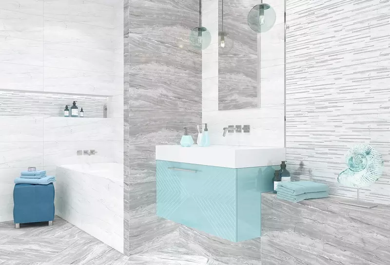 Коллекция выполнена на глянцевой глазури и дополняется керамогранитом в тон.