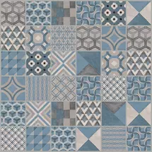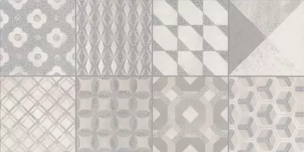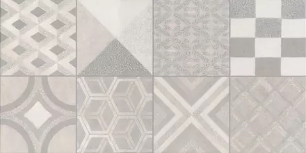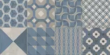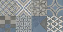 Дополняют настенную плитку декоры форматом 30х60 см и 30х30 см, оформленные в технике лоскутного шитья «пэчворк» с геометрическими орнаментами. Каждый декор обработан особым составом, создающим эффект акварельной живописи.