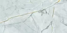 В коллекцию Albion входит глянцевая плитка 24,9х50 см с классическим бело-серым мрамором calacatta и лазурно-голубым камнем pulpis blue.