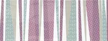 Яркая коллекция плитки в 4-х цветах, гармонично сочетающихся между собой. Два нейтральных цвета выгодно подчеркивают всю насыщенность полосатого декора и цветной базы: голубой и розовой. Поверхность у плитки глянцевая со слегка волнообразной поверхностью. Белая плитка имеет единственный сетчатый рисунок, а остальные три цвета богаты разнообразием из 10-ти едва заметных геометрических узоров.