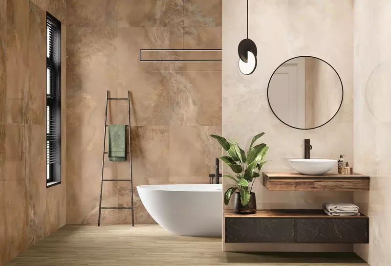 Коллекция имеет необычную цветовую гамму, состоящую из трех цветов: медного, дымчато-сизого и нежного серо-лилового оттенка. Такой керамогранит будет сочетаться как с бетонами, так и с нейтральными ониксами. С этой коллекцией легко создать эксклюзивное пространство, которое будет удивлять.