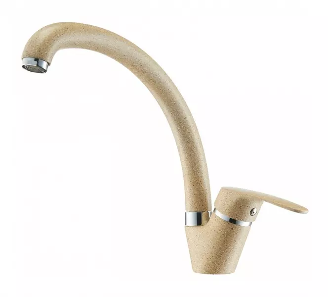 Смеситель для кухонной мойки «Aquaton» Нимо 1AX002FCXX220 песочный - удобная и долговечная модель с элегантным дизайном от известного бренда сантехники Акватон, которая специально разработана точно в цвет кухонной мойки из искусственного камня, при этом структура покрытия обеспечивает надёжную защиту от царапин и сколов. Бежевый смеситель для кухонной мойки с высотой поворотного излива 20.2 см и длиной 19.7 см изготовлен из долговечной латуни высокого качества и устанавливается на кухонную мойку, для монтажа потребуется всего лишь одно отверстие. Напор и температура воды регулируется при помощи рычажного механизма с бесшумным керамическим картриджем. В полностью готовом к установке комплекте также предусмотрены аэратор, гибкая подводка 1/2" и крепления, вес - 1.1 кг. Приезжайте в наш шоу-рум посмотреть и купить смеситель для кухонной мойки Aquaton Нимо. Магазин Блюмарт – самый большой гипермаркет сантехники и плитки в Москве, общая площадь более 15000 м². Вы удивитесь выбору и обязательно сможете подобрать подходящий смеситель для кухни, а также остальную сантехнику, мебель и декор на любой вкус. У нас вы найдёте всё, также заказывайте товары на сайте www.blumart.ru или по телефону +7-495-540-51-52, также у нас работает доставка по всей Москве и Московской области, а наши специалисты всё объяснят, проконсультируют и помогут вам!