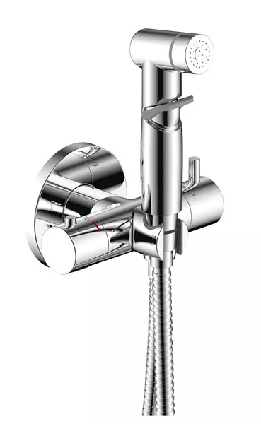 • Смеситель с гигиеническим душем «Rossinka» X25-58 с термостатом хром, картинка №2