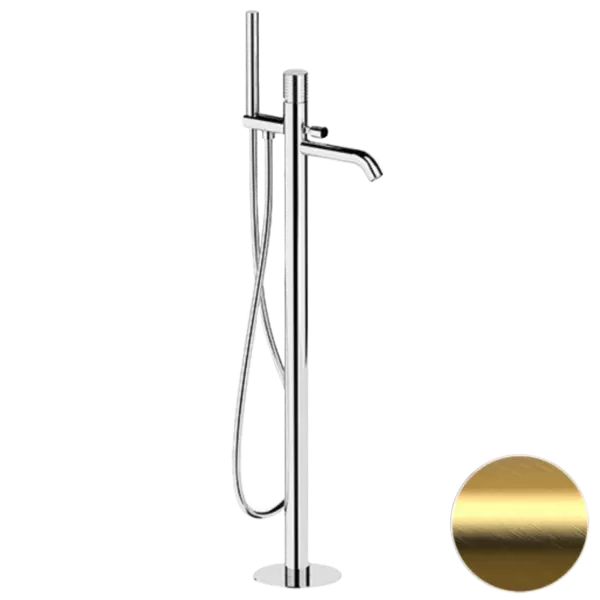 Напольный смеситель для ванны с душем «Remer» Celebrity CEC08BG золото брашированное