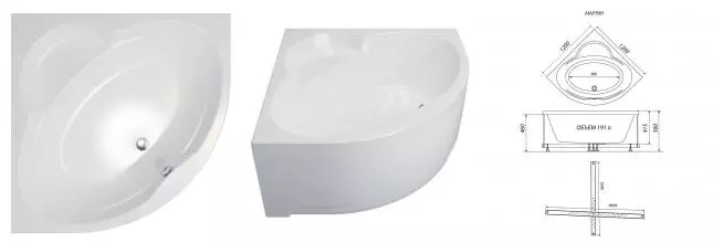 Ванна акриловая «1ACReal» Martin 120/120 (обрезанная) обрезанная без опор без сифона белая