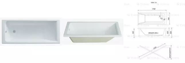 Ванна акриловая «1ACReal» Tory 170/70 без опор без сифона белая